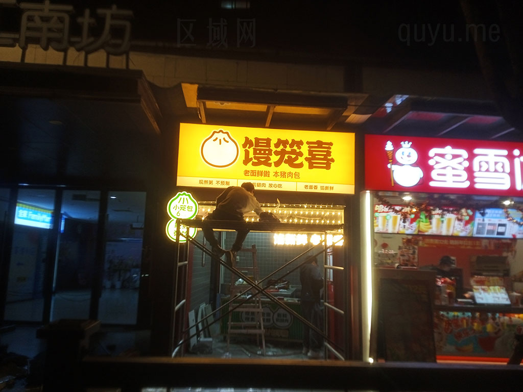 | 昌岗东路·广美正门对面·江南坊东入口,看到似乎在新装一家叫馒笼喜的包子铺/早餐店 |